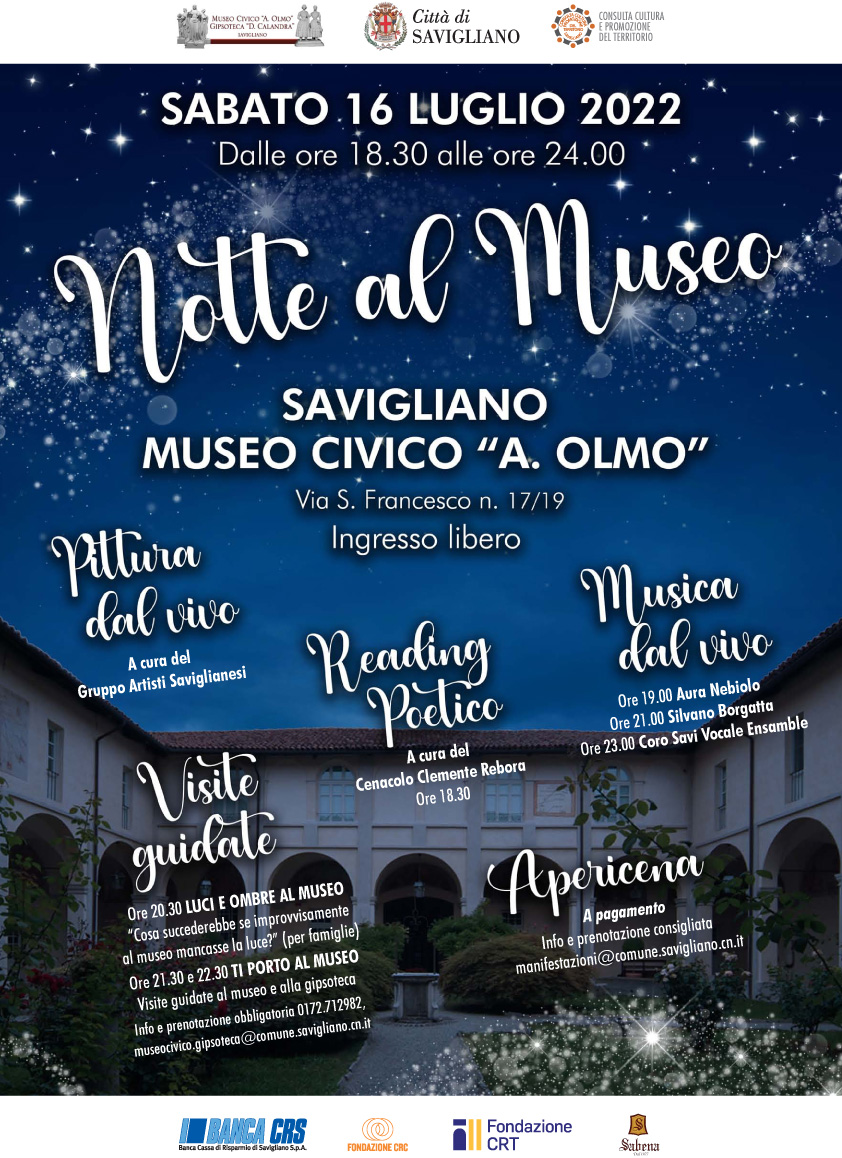 Museo Civico di Savigliano2023-05-04T16:53:40+02:00Sabato 16 luglio 2022 NOTTE AL MUSEO Dalle ore 18,30